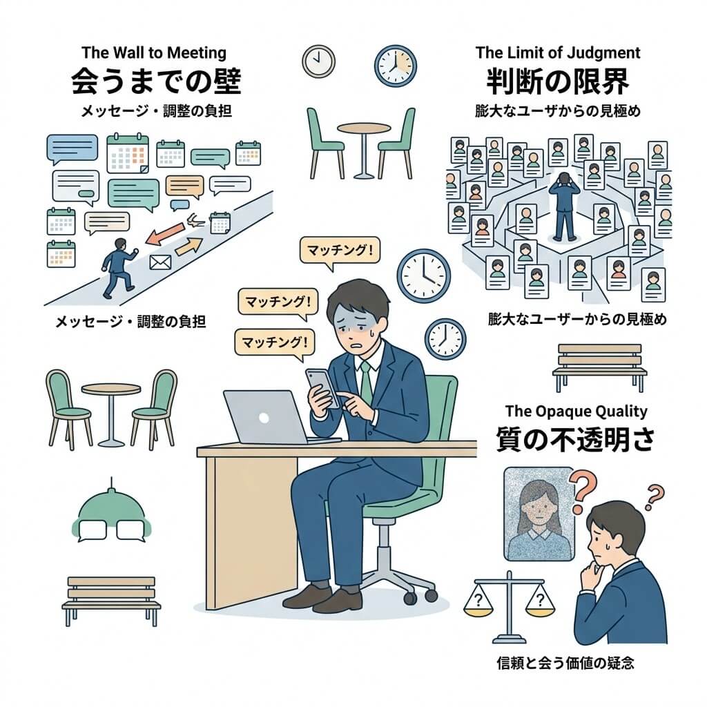 また、相手のプロフィール写真が加工されていたり、実際に会ってみたら話が全く合わなかったりと、貴重な休日を無駄にしてしまうリスクも常に付きまといます。「会うまでのコスト」が高すぎるあまり、本来の目的であるはずの「素敵な出会い」にたどり着く前に諦めてしまう人が増えています。そんな時間的・精神的なロスをゼロにしたいという切実な願いが、今の時代にはあります。